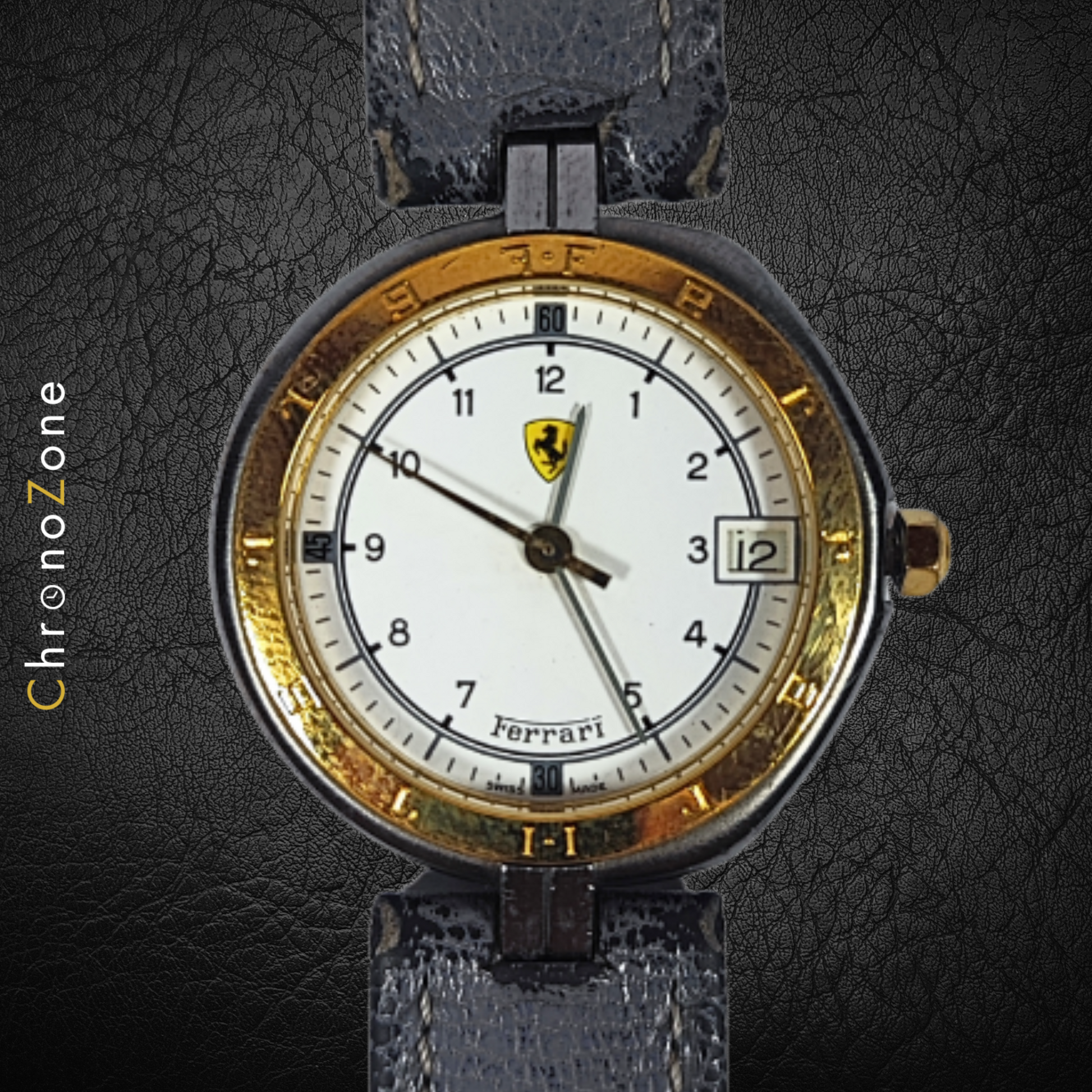 This exquisite Ferrari Formula by Cartier watch is a true collector's item that combines style and precision. Made in Switzerland, it stands out for its elegant design and 18-carat yellow gold bezel. The sturdy leather strap and minimalist dial give it a classic beauty that is timeless.