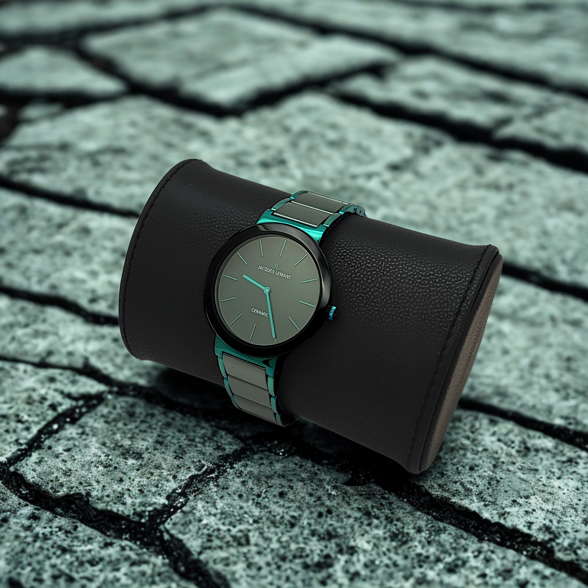 The distinctive stainless steel/ceramic bracelet with its glossy turquoise finish makes this watch a true eye-catcher, suitable for both business and casual outfits. Durable, scratch-resistant, and stylish – an accessory that can accompany you every day.